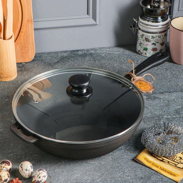 Čuguna panna ar vāku, 26×6 cm, piemērota Kamado T203C3